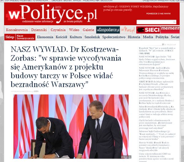 NASZ WYWIAD. Dr Kostrzewa-Zorbas: "w sprawie wycofywania się Amerykanów z projektu budowy tarczy w Polsce widać bezradność Warszawy"
