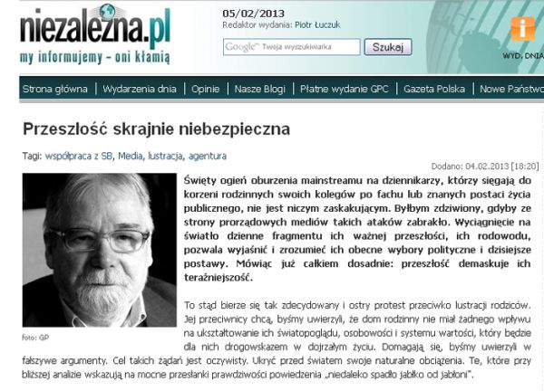 Święty ogień oburzenia mainstreamu na dziennikarzy, którzy sięgają do korzeni rodzinnych swoich kolegów po fachu lub znanych postaci życia publicznego, nie jest niczym zaskakującym. Byłbym zdziwiony, gdyby ze strony prorządowych mediów takich ataków zabrakło. Wyciągnięcie na światło dzienne fragmentu ich ważnej przeszłości, ich rodowodu, pozwala wyjaśnić i zrozumieć ich obecne wybory polityczne i dzisiejsze postawy. Mówiąc już całkiem dosadnie: przeszłość demaskuje ich teraźniejszość.